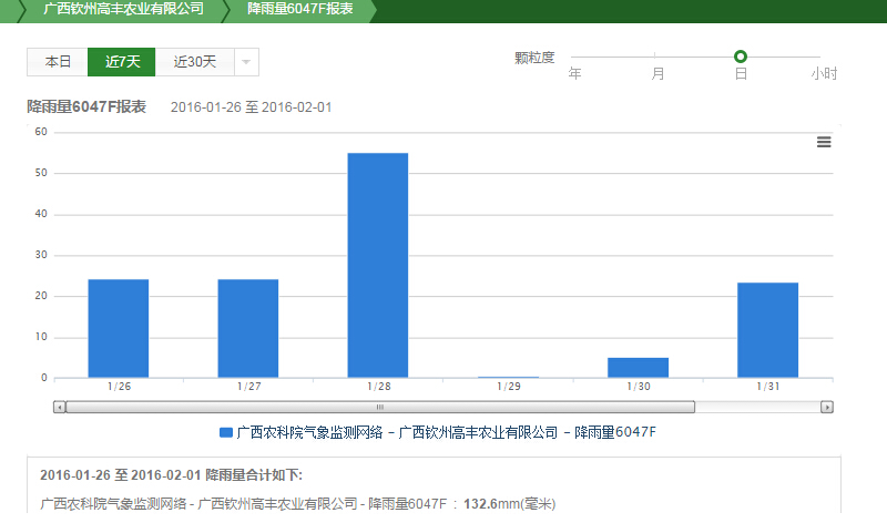 利用空氣溫度傳感器、空氣濕度傳感器、光照度、降雨量等傳感設(shè)備實時監(jiān)測火龍果種植的環(huán)境。實時監(jiān)測的環(huán)境情況數(shù)據(jù)每隔10秒鐘就上傳到“天潤智力智慧農(nóng)業(yè)云平臺”,研究所人員只要登錄手機APP或者在電腦上,就可以遠(yuǎn)程隨時隨地查看火龍果種植基地的各項關(guān)鍵數(shù)據(jù)。所采集的數(shù)據(jù)實時上傳到天潤智力智慧農(nóng)業(yè)云平臺,并快速進行統(tǒng)計分析,解決了科研人員對數(shù)據(jù)的采集分析需求,并確保了數(shù)據(jù)采集的精準(zhǔn)、快速、全面。