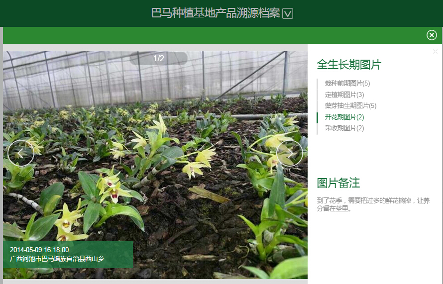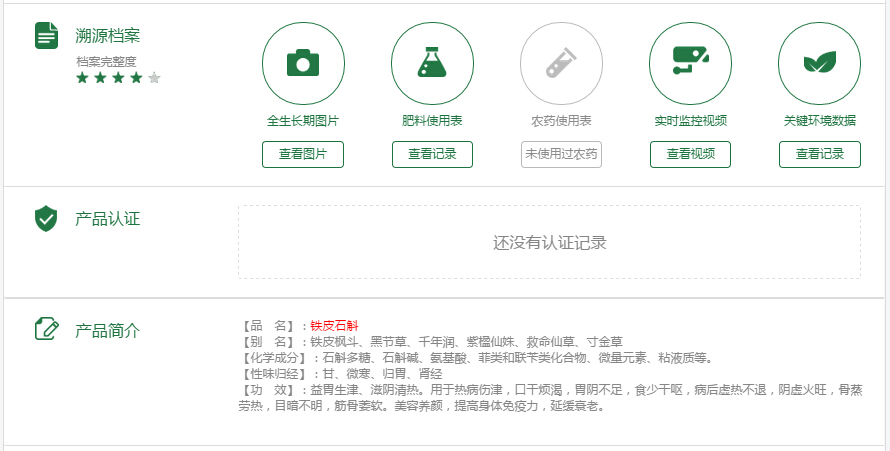 得益于天潤智力智慧農業(yè)監(jiān)控系統(tǒng),消費者只要在手機或者平板電腦安裝了天潤智力智慧農業(yè)云平臺,從鐵皮石斛栽培的第一天起,消費者就可以隨時隨地跟蹤生產過程,通過農場視頻、實時采集的種植環(huán)境數(shù)據(jù),了解巴馬群山環(huán)繞的田地里大棚的土壤溫度、空氣濕度、光照情況、鐵皮石斛的長勢,親歷生產全過程,真正做到全程掌控,提前預定,大幅提升用戶粘性。同時天潤智力農產品溯源系統(tǒng),給每一株“巴馬蘭”鐵皮石斛制作了自己唯一的身份(二維碼),完整記錄這株石斛的產地、種植、收割、加工、倉儲、質檢等全部信息,消費者只要掃描產品二維碼,就能快速地查看“巴馬蘭”鐵皮石斛的詳細信息。豐旭農業(yè)科技有限公司利用天潤智力智能農業(yè)監(jiān)控系統(tǒng)以及農產品溯源平臺,在消費者和每一位客戶心中,建立并展示了綠色、有機、安全的良好品牌形象,最大限度獲取了消費者的信賴。