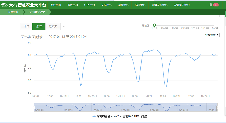“安全、優(yōu)質(zhì)”是向葡萄秉承的生產(chǎn)理念。葡萄屬于精細(xì)作物,生產(chǎn)過(guò)程中對(duì)溫度、水分、光照都有嚴(yán)格的要求。溫度增長(zhǎng)過(guò)快可能導(dǎo)致花期受精不良;水分過(guò)多,就會(huì)提高葡萄霜霉病、灰霉病的發(fā)病率;光照過(guò)強(qiáng)則會(huì)造成灼傷,因此在葡萄的生產(chǎn)過(guò)程中,需要投入大量的人力進(jìn)行監(jiān)督管理。但即便是投入了人力,人工操作的隨意性特點(diǎn),也難以保證操作的實(shí)時(shí)性,極易造成葡萄品質(zhì)的不穩(wěn)定。為了穩(wěn)定和提高葡萄的品質(zhì),向葡萄同時(shí)引進(jìn)了天潤(rùn)智力智慧農(nóng)業(yè)監(jiān)控系統(tǒng),啟動(dòng)葡萄園的智能化生產(chǎn)。