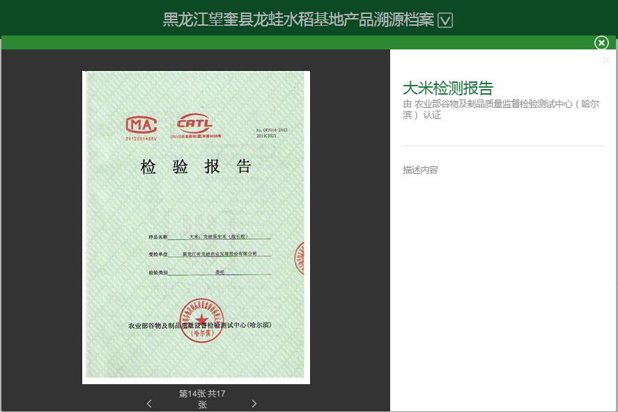 對于“好食品”,龍蛙農(nóng)業(yè)的定義是:綠色、有機、安全,有標準、可追溯。龍蛙農(nóng)業(yè)具有得天獨厚的地里優(yōu)勢。其種植基地位于黑龍江省級自然保護區(qū)“西洼荒自然保護區(qū)”內(nèi),水草豐美,野鳥翩躚,具有原生態(tài)的環(huán)境特質(zhì),是黑龍江省目前少有的幾處天然氧吧之一,也是世界三大寒地黑土帶之一的松嫩平原核心區(qū)。這里的水,是天然圣水;這里的土,號稱黑色寶石。為了讓全國的消費者都能知曉每一粒龍蛙大米的“前世今生”,了解每一粒大米從春天一粒種子落地開始,到秋天收獲以及加工配送的全過程,2014年龍蛙農(nóng)業(yè)正式在各大生產(chǎn)基地投入使用“天潤智力農(nóng)產(chǎn)品溯源系統(tǒng)”,通過可追溯系統(tǒng)實現(xiàn)質(zhì)量管控,打造全國消費者“看得見”的可追溯產(chǎn)品。