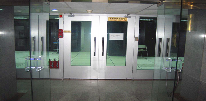 (機(jī)房中的隔斷多采用方鋼+鋁塑板邊框&12mm厚鋼化防火玻璃。防火玻璃。它具有隔音、隔熱、耐壓等特點,透視效果極佳,并增添機(jī)房的簡練)