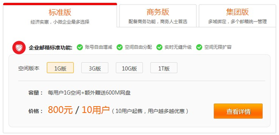 點擊“查看詳情”進(jìn)入到云郵箱標(biāo)準(zhǔn)版購買頁面。如下圖: