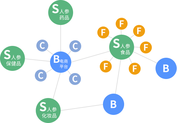 現以“人參產業(yè)帶”為例,通過打造“中國參谷供應鏈平臺”——S端整合人參藥品、保健品、化妝品、食品等相關工廠F,形成產品豐富的供應鏈,統(tǒng)一對B端的品牌電商平臺供貨,讓人參產品在線化,供終端消費者C選擇。多樣化的人參產品,再加上政府背書,從而打造“人參在線產業(yè)帶”!