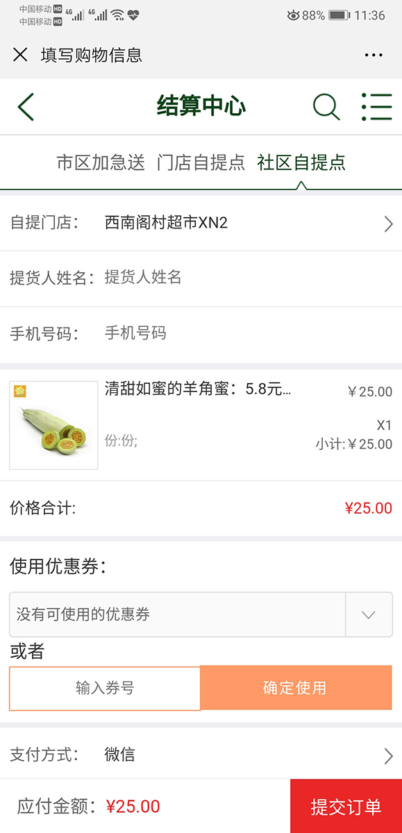 結(jié)算中心,有物流配送、門店自提、社區(qū)自提點(diǎn)(團(tuán)長)三種類型