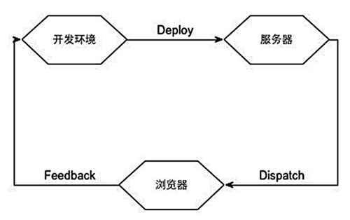 通過這個(gè)閉環(huán),特別是從瀏覽器回到開發(fā)環(huán)境這個(gè)環(huán)節(jié),前端工程師會(huì)通過具體產(chǎn)品和終端用戶進(jìn)行頻繁的信息交換,在最終的產(chǎn)品中進(jìn)行信息收集,再將信息轉(zhuǎn)化為指標(biāo)或其他能夠衡量產(chǎn)品質(zhì)量的形式,以此指導(dǎo)工作方向。
