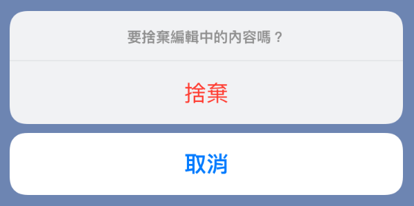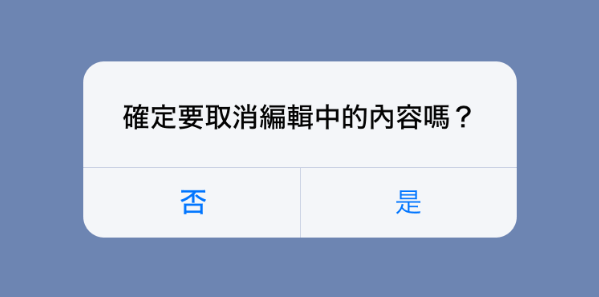 問句確定要取消編輯中的內(nèi)容嗎?確認是否要舍棄編輯中的內(nèi)容(兩個選項)