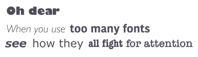 正常情況下,使用一種字體就行,有時(shí)候也可以為了突出也可以使用兩種字體,但是這種字體之間的差異應(yīng)該降到最低,在設(shè)計(jì)上盡量達(dá)到和諧。