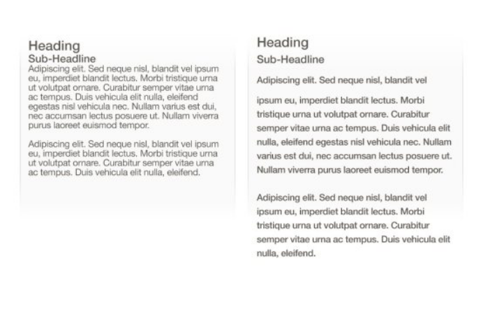 據(jù)研究表明,適當(dāng)?shù)男虚g距有利于提高用戶對(duì)文本內(nèi)容的理解度,行間距過大或者過小都會(huì)對(duì)用戶的閱讀體驗(yàn)產(chǎn)生影響。