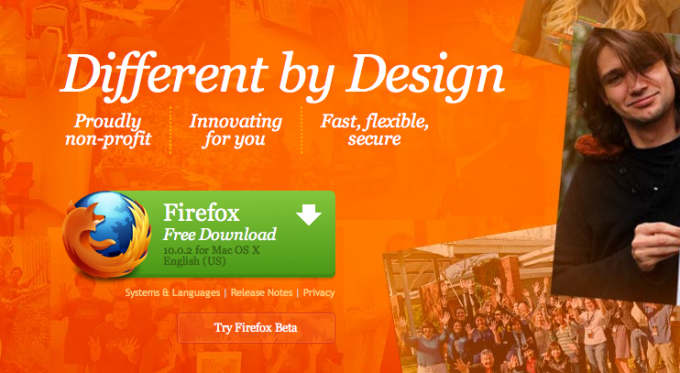 按鈕要多大才算夠看? Econsultancy 認(rèn)為愈大愈好,不過最好還是搭配頁面設(shè)計(jì),才不會(huì)壞了整個(gè)畫面協(xié)調(diào)度。不過也有例外情況,必要時(shí)即使多占些版面也沒關(guān)系。瞧瞧下圖 Firefox 的按鈕,是不是不去看到都不行?