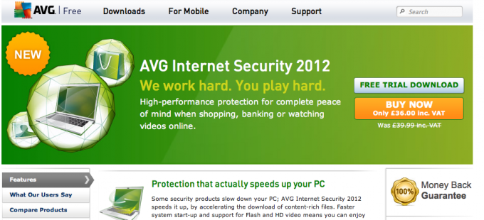 網(wǎng)頁上有多個(gè)不同用途的按鈕時(shí),例如「立即購(gòu)買」、「下載試用版」等,可以依按鈕重要性來設(shè)計(jì),以突顯主要與次要的按鈕。例如 AVG 使用亮橘色呈現(xiàn)最重要的「立即購(gòu)買」鈕,跟其他按鈕做區(qū)隔(下圖)。消費(fèi)者不僅能一眼就看到,還能持續(xù)保持注意力。