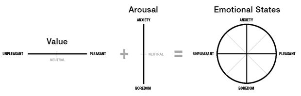 為理解情緒表達(dá)如何成為人格,我們首先需要理解情緒本身。我們可以用兩個(gè)潛在的維度來(lái)描述所有的情緒或情感狀態(tài),即價(jià)值(value)和喚醒度(arousal)。價(jià)值判斷是指對(duì)事物好壞的判斷。我們通常會(huì)根據(jù)事物是否令我們感到愉悅來(lái)形成這些有意識(shí)的判斷。