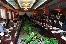 3月28日下午4時(shí)許,中國(guó)與歐盟就中國(guó)加入世界貿(mào)易組織的新一輪談判在外經(jīng)貿(mào)部談判大樓舉行。圖為雙方談判現(xiàn)場(chǎng)。
