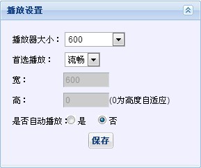 發(fā)布前,可以設(shè)置“播放器大小”、首選播放的“碼率”、是否“自動播放”,點擊保存設(shè)置,如下圖;